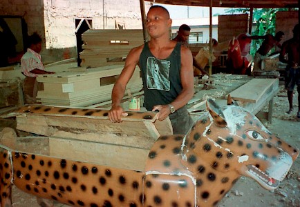 Die westafrikanische Volksgruppe der Ga ist überzeugt, dass das Leben im Himmel dem auf Erden ähnelt. Die Ga glauben, dass der gesellschaftliche Status der Verstorbenen im Jenseits auch davon abhängt, in welchem Gefährt sie dort ankommen. Sie geizen also nicht beim Kauf eines Sarges. Die ebenso prunkvollen wie bunten Särge sind inzwischen weltweit bei Kunstsammlern beliebt.
