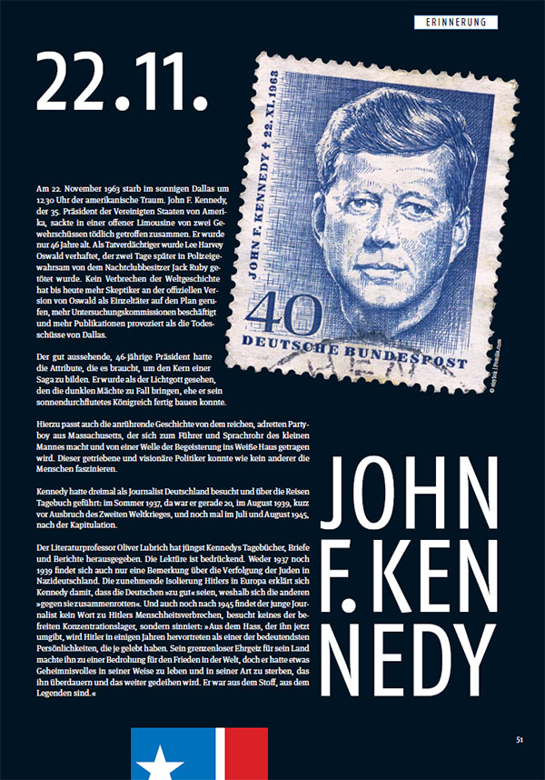 Am 22. November 1963 starb im sonnigen Dallas um 12.30 Uhr der amerikanische Traum. John F. Kennedy, der 35. Präsident der Vereinigten Staaten von Amerika, sackte in einer offener Limousine von zwei Gewehrschüssen tödlich getroffen zusammen. Er wurde nur 46 Jahre alt. Als Tatverdächtiger wurde Lee Harvey Oswald verhaftet, der zwei Tage später in Polizeigewahrsam von dem Nachtclubbesitzer Jack Ruby getötet wurde. Kein Verbrechen der Weltgeschichte hat bis heute mehr Skeptiker an der offiziellen Version von Oswald als Einzeltäter auf den Plan gerufen, mehr Untersuchungskommissionen beschäftigt und mehr Publikationen provoziert als die Todesschüsse von Dallas...