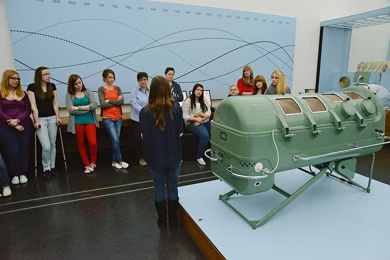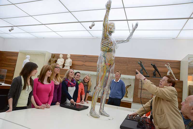 Die Eizelle. So groß wie der Punkt am Ende des Satzes. Ein Vergleich, mit dem Florian Rensch etwas anfangen kann. Seine Lehrerin hat gefragt, wer die Dimension des Ursprungs menschlichen Lebens denn einschätzen könne. Dabei steht sie vor einem riesigen Modell im Deutschen Hygiene-Museum. »Leben und Sterben« heißt der Teil der Dauerausstellung »Abenteuer Mensch«, die dort seit zehn Jahren zu sehen ist. Manche Neuerung hat sie derweil erlebt, die meisten Exponate aber wirken ebenso zeitlos wie die Fragen im Fokus der Schau. Davon sollen die jungen Leute, die in die Ausstellung kommen, möglichst viele sammeln. Fragen, die sie mit nach Hause nehmen, die sie noch lange bewegen, über die sich mit anderen austauschen lässt...