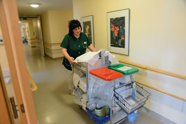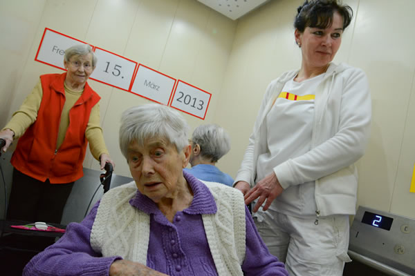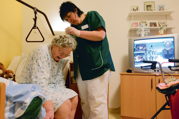 Mathilde Baarß liegt im Bett, die Augen geöffnet. Winzig sieht sie aus, ihr schmaler, 92-jähriger Körper ist unter der Decke kaum auszumachen. Weiße Locken stehen ihr in alle Richtungen vom Kopf ab. Mit ungerührter Miene mustert sie Carolin Saßenbach, die mit einer wassergefüllten blauen Plastikwanne und freundlicher Ansprache eintritt und raumfüllende Bewegung ins Zimmer bringt...