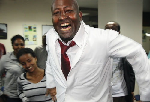Als ich Belachew Girma das erste Mal sah, kugelte er sich, in einen weißen Kittel gehüllt, auf dem Boden und lachte hysterisch.