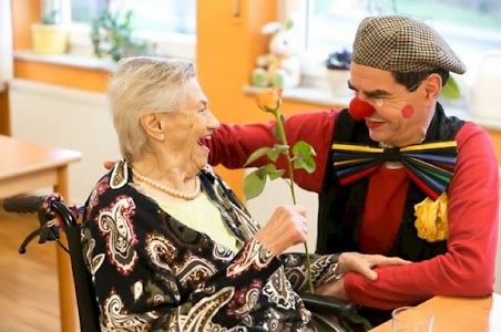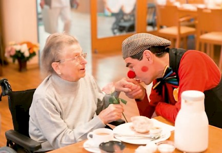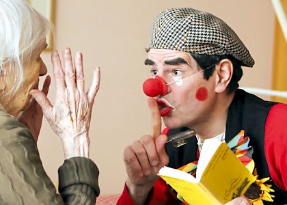 Eva Beyer* lächelt. Das erste Mal an diesem Tag. Seit fünf, sechs, acht Minuten sitzt der Clown neben ihr, legt den Arm um sie, streichelt ihre Hand, sieht sie freundlich an. Er hat ihr vor einiger Zeit laut ins »gute« Ohr »Guten Morgen, Frau Beyer!« gesagt und: »Hat das Frühstück geschmeckt?« Ansonsten ist nichts passiert. Jedenfalls nichts, was sichtbar gewesen wäre. Irgendetwas muss aber passiert sein, denn Frau Beyer wendet den Kopf, schaut den Clown an und lächelt...