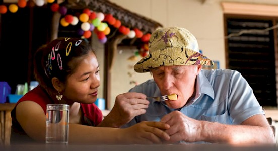 Es ist nur ein kurzes Memo, das sie sich selbst hinterlassen hat. Woran sie sich jeden Morgen erinnern will, das hat sie auf dieses Blatt Papier geschrieben, in krakeliger Schrift, mit farbigen Stiften, und es dann mit Tesafilm an den Kleiderschrank geklebt, der direkt gegenüber von ihrem Bett steht. Wenn Elisabeth morgens aufwacht, die Augen öffnet und sich mühsam aufsetzt, dann schaut sie unweigerlich darauf. Sie bräuchte eigentlich so viel mehr Platz, als dieses Blatt Papier bietet, um aufzuschreiben, was los ist, wer sie ist und warum sie hier in diesem fremden Zimmer aufwacht. Aber das Blatt ist zu klein. Daher hat sie sich auf das Nötigste beschränkt: »Ich bin in Thailand. Dies ist eine Alzheimer-Einrichtung.«..