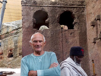 Alles begann mit einem Foto, das Herr P. etwa zwanzig Jahre zuvor in einem Magazin gesehen hatte. In welchem es war, wusste er nicht mehr. Es bildete die Georgskirche in Lalibela ab, ihre Gestalt ein griechisches Kreuz. Ein faszinierendes Bild. Ockerfarbiges Gestein, im Hintergrund eine Landschaft mit einem Höhenzug unter blassblauem Himmel. Und ihn packte eine große Lust, nach Lalibela in Äthiopien zu reisen, einem Ort, dem ein König seinen Namen gab. Es hat gedauert, ehe er sich diesen Wunsch erfüllten konnte. Jetzt aber war er in Lalibela, jetzt stand er in der Welterlöserkirche Bete Medhane Alem, jetzt war er am Ziel seines Wunsches, jetzt war er bereit zu schauen...