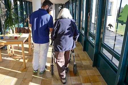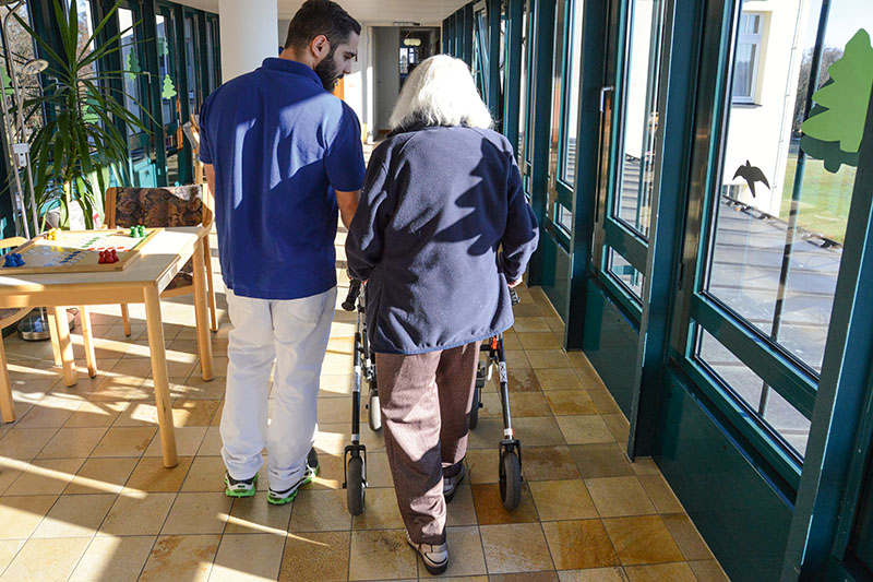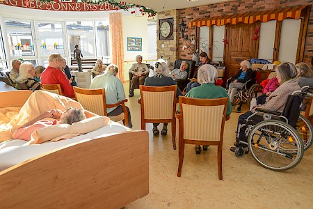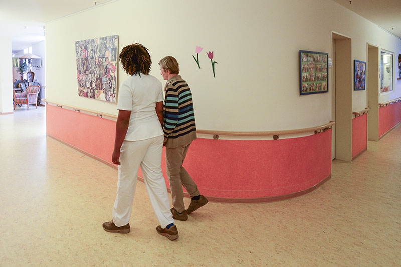 Der Frühstückstisch in der Wohngruppe im »Sonnenhof« in Ebenhausen in der Nähe von München ist gerade abgeräumt. Angelika, die Betreuungskraft, packt einen Stapel Karten aus. »Sollen wir ein paar Sprichwörter raten?«, fragt sie laut. »Wie gewonnen, so …«, liest sie vor und schaut in die Runde. »… so zerronnen«, sagt mit monotoner Stimme eine weißhaarige Frau, deren Blick ganz nach innen gerichtet scheint. Ein Herr mit starken Brillengläsern erhebt sich, nickt, schiebt seinen Stuhl akkurat an den Tisch und geht. Am Tischende schnaubt eine Dame verächtlich und schüttelt den Kopf. Eine andere döst mit halbgeschlossenen Augen; nur einmal taucht sie für eine Antwort aus ihren Gedanken auf. Im Hintergrund verfolgt eine Frau andere Bewohner, packt sie am Arm, um mit ihnen zu reden. Wieder eine andere betrachtet nachdenklich ihre zusammengeknüllte Stoffserviette. Schließlich beginnt sie, damit energisch die Möbel zu polieren...