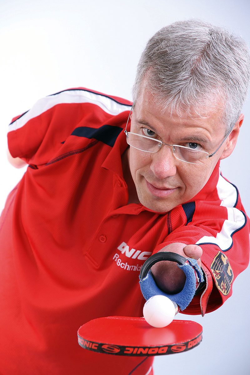 Tischtennis war für Rainer Schmidt zunächst ein Spiel von einem anderen Planeten. Er versuchte es zum ersten Mal im Alter von zwölf Jahren, in den Ferien in Österreich, aber er stellte schnell fest, dass er den Schläger nicht halten konnte. Rainer Schmidt ist ohne Hände und mit zu kurzen Armen geboren, es leuchtete ihm ein, dass sein Körper für Tischtennis nicht funktionierte. Er stellte sich neben die Platte, wenn die anderen spielten, und zählte die Punkte. Doch noch in denselben Ferien sprach ihn ein Urlauber an, ob er nicht mitspielen wolle. Er könne den Schläger nicht halten, sagte Rainer Schmidt...