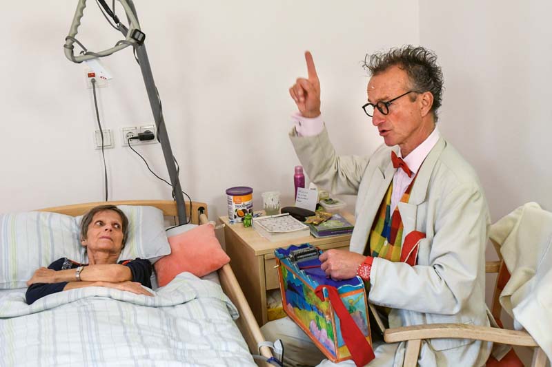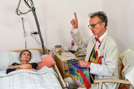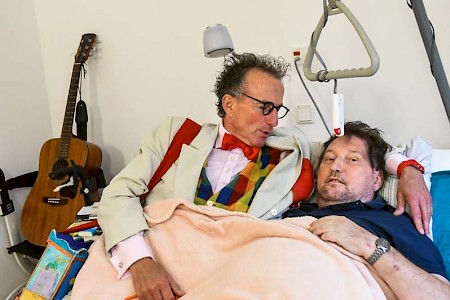 Lachen und Weinen sind Geschwister, findet der Pantomime und Clown Christoph Gilsbach. Kranken und trauernden Menschen schenkt er helle, heitere Momente. Weglaufen kann man vor dem Tod sowieso nicht – weshalb sollte man dann nicht mit ihm tanzen?