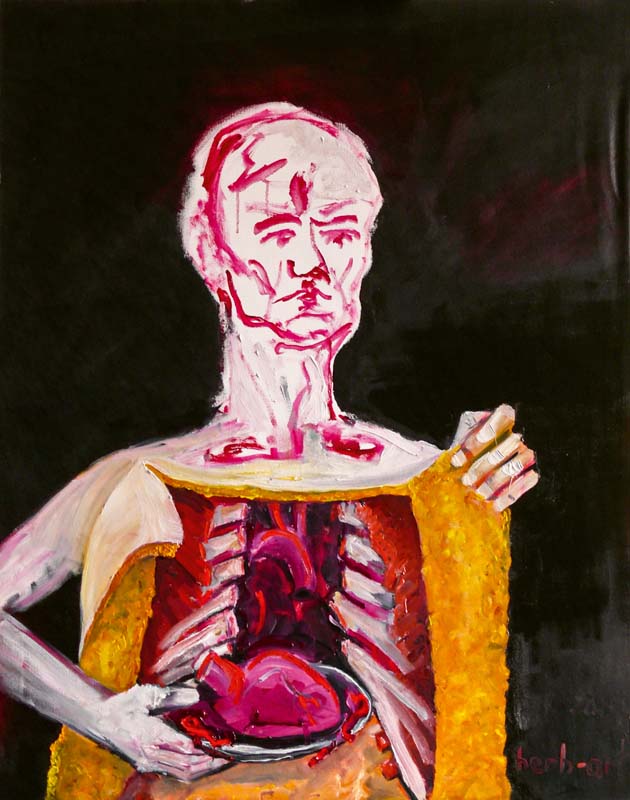 Einigen Medizinern dient die Kunst als Ausgleich zu ihrer Arbeit. Während ein Arzt dem absoluten Realitätsbezug verpflichtet ist, kann er als Künstler seinen individuellen Sinneseindrücken freien Lauf lassen. Viele Ärzte haben sich der Malerei verschrieben, Dies hängt wohl auch damit zusammen, dass eine bildhafte Vorstellungskraft zwingend zu ihrer Arbeit gehört. Medizinische physikalische Verfahren wie Röntgen, Sonographie, Kernspintomographie, Endoskopie ermöglichen reale Abbildungen vom physischen Inneren des Körpers und können körperliche Ursachen für Störungen der Gesundheit erschließen. Es kommt aber auch darauf an, bei Patienten über den körperlich-seelischen Zusammenhang Krankheitsursachen aufzudecken. Malen schult die Fähigkeit des intensiven Hinsehens und fördert Sensibilität und Achtsamkeit. »Die Erfahrungen, die ich als Arzt sammeln konnte, sind zum fixen Bestandteil meiner künstlerischen Arbeit geworden«, betont denn auch Dr. Herbert Wiedergut, der unter seinem Künstlernamen herb-art bekannt ist. Deutlich zu erkennen sind diese Einflüsse in seinem Selbstporträt mit dem Titel »Organspende«. Auch wenn das Motiv viele Menschen erschrecke, sieht er darin ein Werk voller Hingabe und Liebe, schließlich habe das Herz seit vielen Jahrhunderten eine mystische Bedeutung...