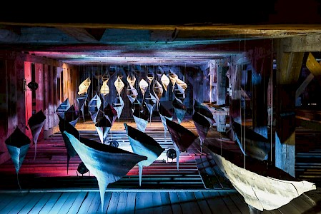 Er hört ihren Atem im Dunkeln. Eine halbe Hundertschaft schmaler Kähne flutet ihm entgegen. Das da, zeigt er, ist ihr Boot. Es funkelt silbern. Ihr Atem stockt. 28 Sekunden lang. Dann wieder ein Zug und noch einer, dann wieder nichts. Wie Wellen bei abflauendem Wind...