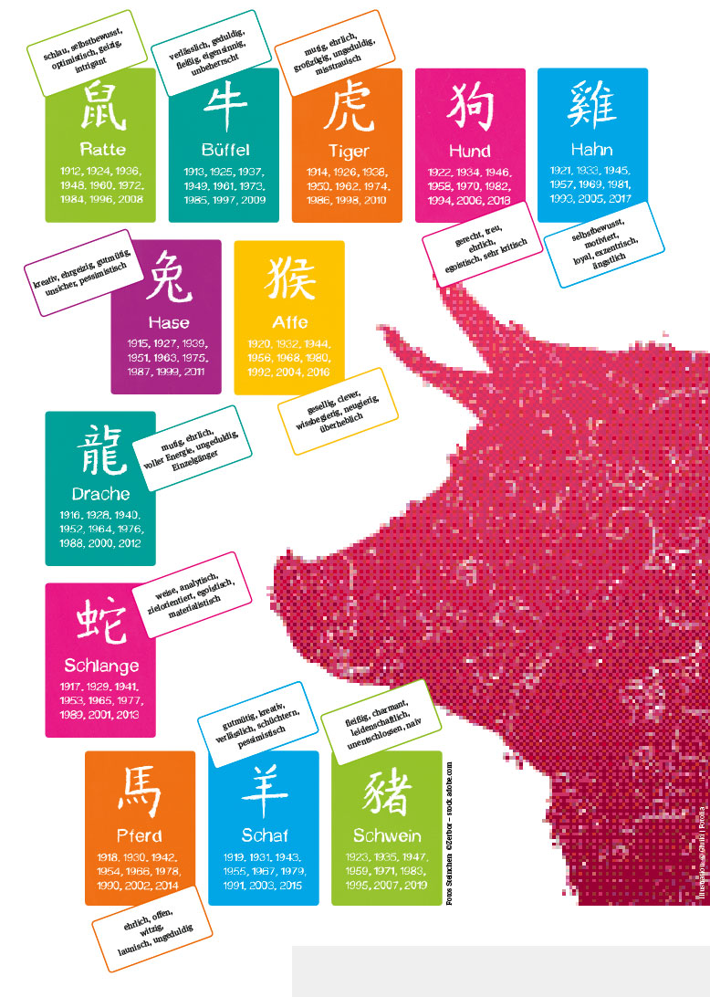 Die Entstehung der chinesischen Astrologie reicht Tausende von Jahren zurück. Schon im altertümlichen China wurde Astrologie dafür verwendet, Stärken und Schwächen, Charaktereigenschaften sowie bestimmte Neigungen oder Talente von Menschen zu deuten. Doch auch heute noch spielt für die Chinesen die Astrologie ein wichtiger Faktor in ihrem Leben, hier allem voran die zwölf chinesischen Tierkreiszeichen...