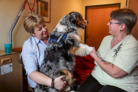 Hündin Tara spendet kranken und alten Menschen Trost und Freude. Zusammen mit seiner Besitzerin Ute Justus begleitet der Therapiehund auch sterbende Menschen im Hospiz.
