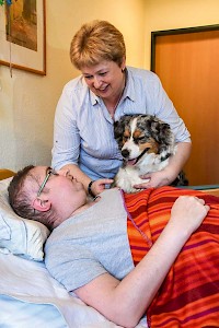 Mindestens einmal pro Woche bekommt Steffen Thämelt Besuch von Tara. Für den 28-Jährigen, der vor vier Monaten aufgrund einer fortgeschrittenen Tumorerkrankung ins Hospiz Radebeul zog, sind die Momente mit Tara etwas Besonderes – kein Wunder, denn Tara ist wirklich außergewöhnlich: ausgebildeter Therapiehund, folgsam, clever, sensibel, aber ausdauernd. Und eine Schönheit mit ihrem weichen, mehrfarbigen Fell und der weißen Brust...