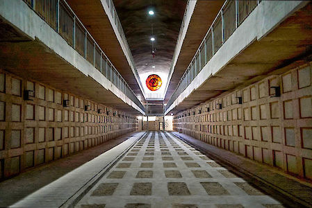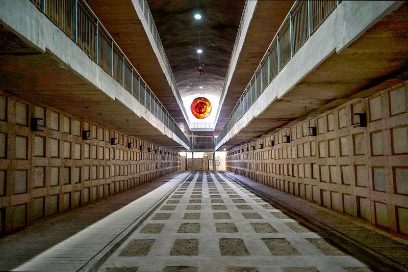 Die Gräber reichen bis an die Decke der Tunnel in 16 Metern Höhe. Wie Bienenwaben reihen sich auf drei Etagen die Löcher aneinander, in denen künftig Menschen ihre Angehörigen bestatten sollen. Die Trauernden erreichen die oberen Gräber über Treppen, Aufzüge und Galerien...