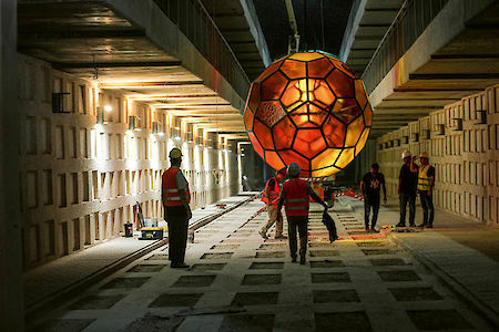 Zehn große Sonnen aus Glas und Stahl erleuchten die Gänge des neuen unterirdischen Friedhofs in Jerusalem. Geschaffen hat sie der hessische Künstler Yvelle Gabriel.