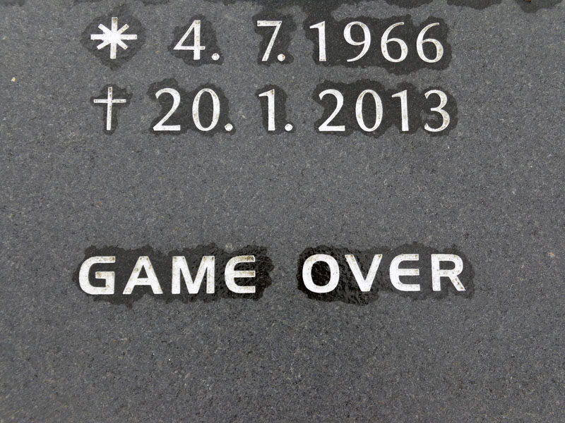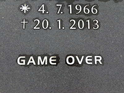 »Wanderer zieh schnell vorüber, sonst steht sie auf und babbelt wieder«, oder auch: »Gestatten Sie, dass ich liegen bleibe«, – noch fallen solche Grabinschriften auf. Doch immer häufiger stehen auf Grabsteinen nicht nur Name, Geburts- und Sterbedatum, sondern auch Sprüche und Lebensmottos, Verweise auf das Hobby oder die Lieblingsband des Verstorbenen, selbst Intimes und Hinweise auf persönliches Scheitern werden verewigt. Wieder öfter auf Grabsteinen zu sehen sind auch Fotos – mitunter ganze Collagen. Rückblicke auf das Leben sind für die heutige Grabgestaltung offenbar wichtiger als Ausblicke auf Jenseits und Wiederauferstehung...