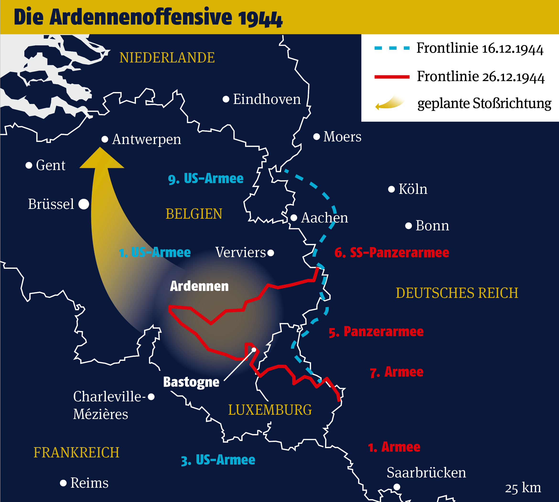 Die Ardennenoffensive 1944 war der letzte Versuch Nazi-Deutschlands, den Westalliierten eine kriegswendende Niederlage zuzufügen.